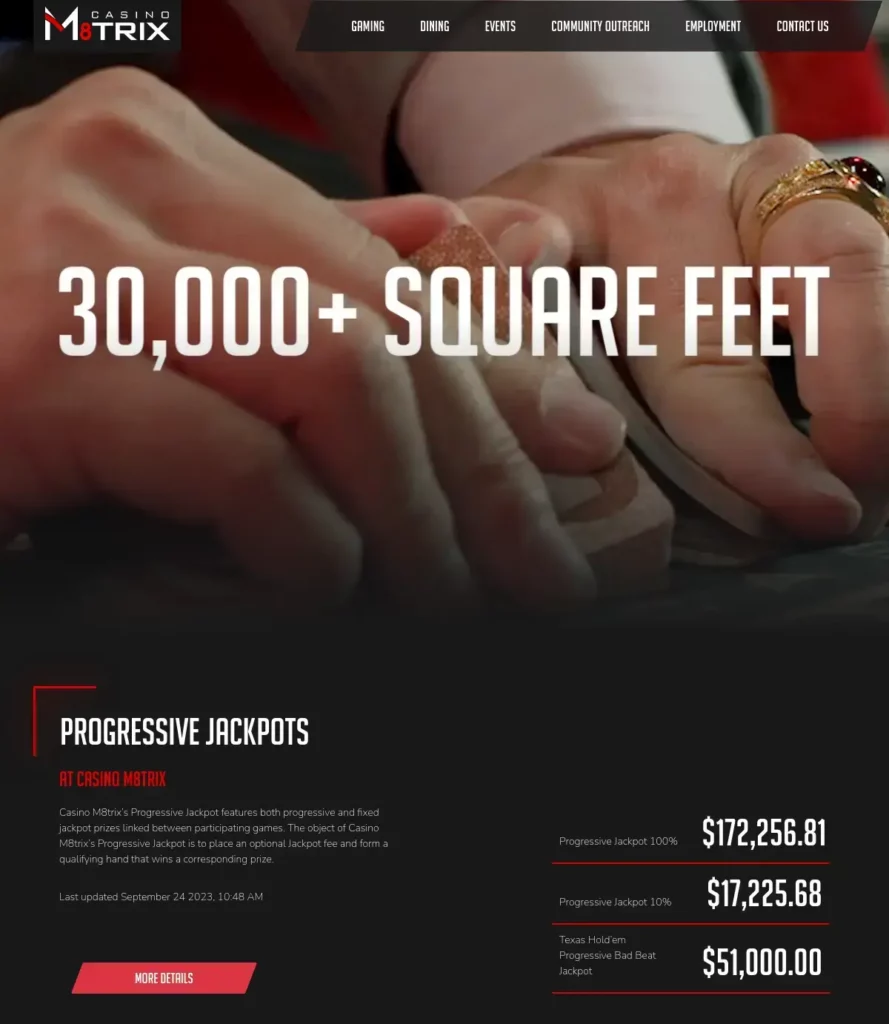 Casino M8trix is a popular casino and entertainment hub in the Silicon Valley region of northern California. In addition to table games, they also feature a number of restaurants and events to attract customers.